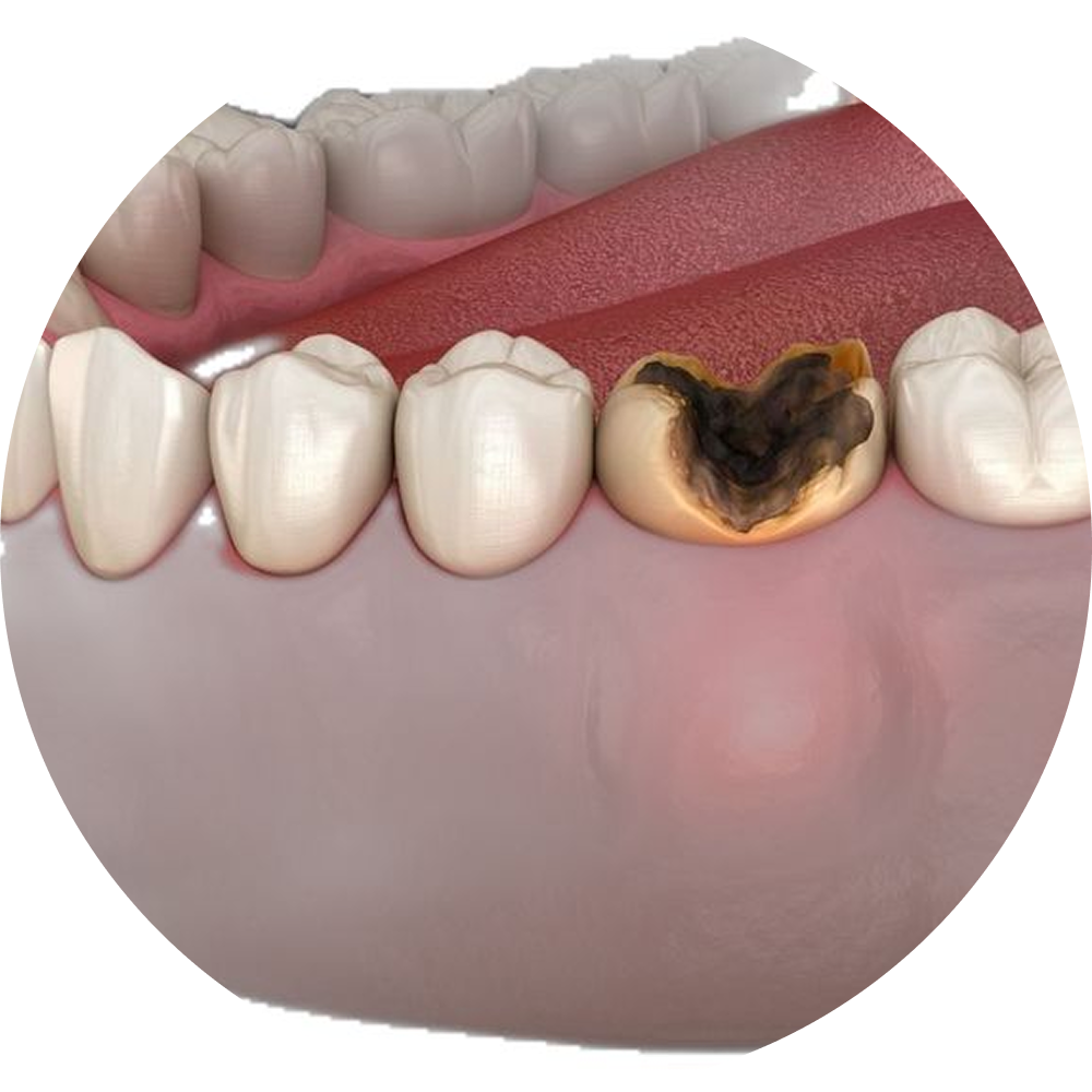 Tishlarning yemirilishi va tushib ketishi (karies, paradontit va hakozo).